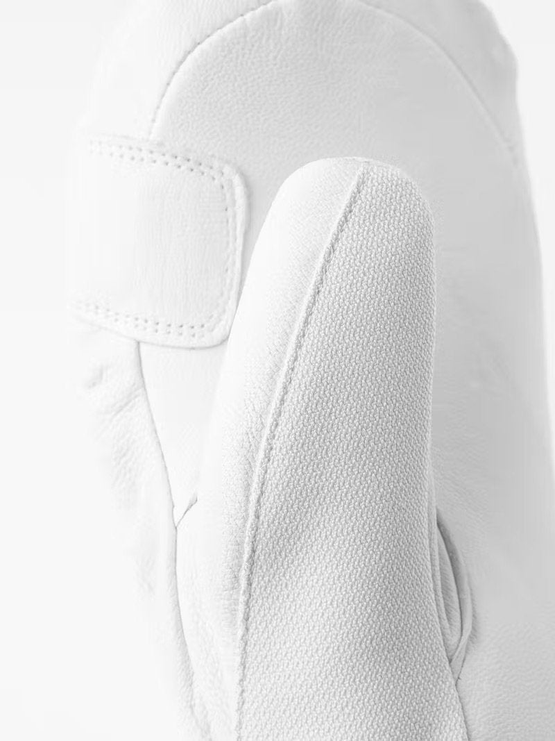 The mitten design traps more heat than gloves, making it a great choice for those prone to cold fingers. It's crafted with Hestra’s durable Army Leather and weather-resistant softshell fabric for lasting protection in demanding conditions.